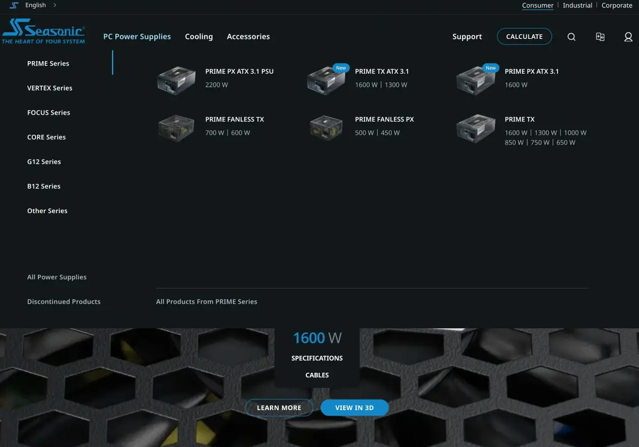 تقدم Seasonic أوسع مجموعة من وحدات إمداد الطاقة في السوق، تتراوح بين ٢٢٠٠ واط و٤٥٠ واط. لاختيار وحدة إمداد الطاقة المناسبة التي تضمن تشغيلًا مستقرًا لجهاز الكمبيوتر الخاص بك وجميع مكوناته، نوصي باستخدام حاسبة إمداد الطاقة Seasonic، التي ستُجري لك حسابًا دقيقًا للطاقة. كل ما عليك فعله هو إدخال طاقة كل مكون في نظامك (المعالج، بطاقة الفيديو، المراوح، إلخ)، وسيظهر لك مجموع الطاقة اللازمة لتشغيل مكوناتك على الشاشة.